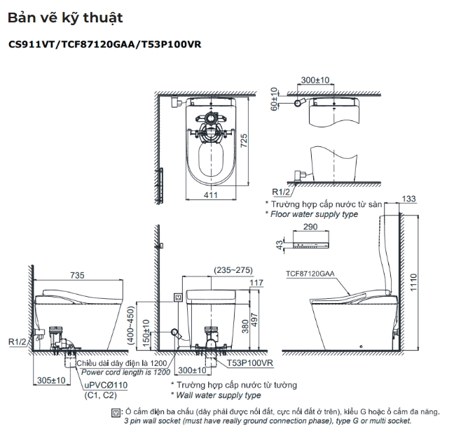 Nguồn điện: 220V, 50/60Hz